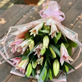 Price: $70.00Hydrangea w/ lilies Bouquet Wrap